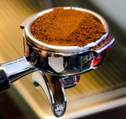 Une fois que tu as moulu la bonne quantité de café dans ton porte-filtre, il est temps de bien tasser ton café et avec une pression uniforme. Ceci est très important et il est préférable de tenir le tamper devant toi comme une lampe de poche avec un bras droit, puis de tourner ton coude à un angle de 90º. Assures-toi de tenir ton porte-filtre aussi droit que possible et de le tasser uniformément jusqu'à ce que tu ressentes une contre-pression.